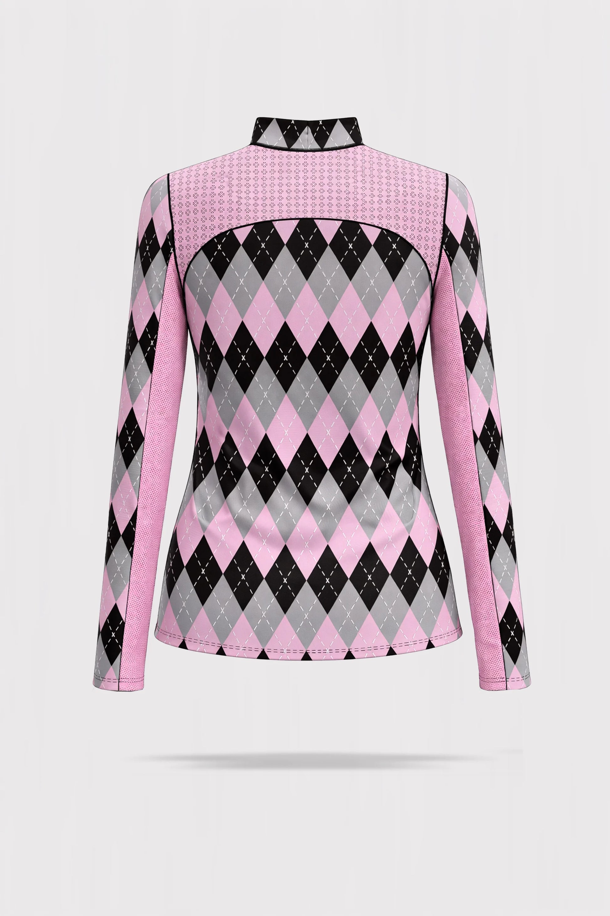 Rosé Long Sleeve Top 1/4 Zip - Argyle